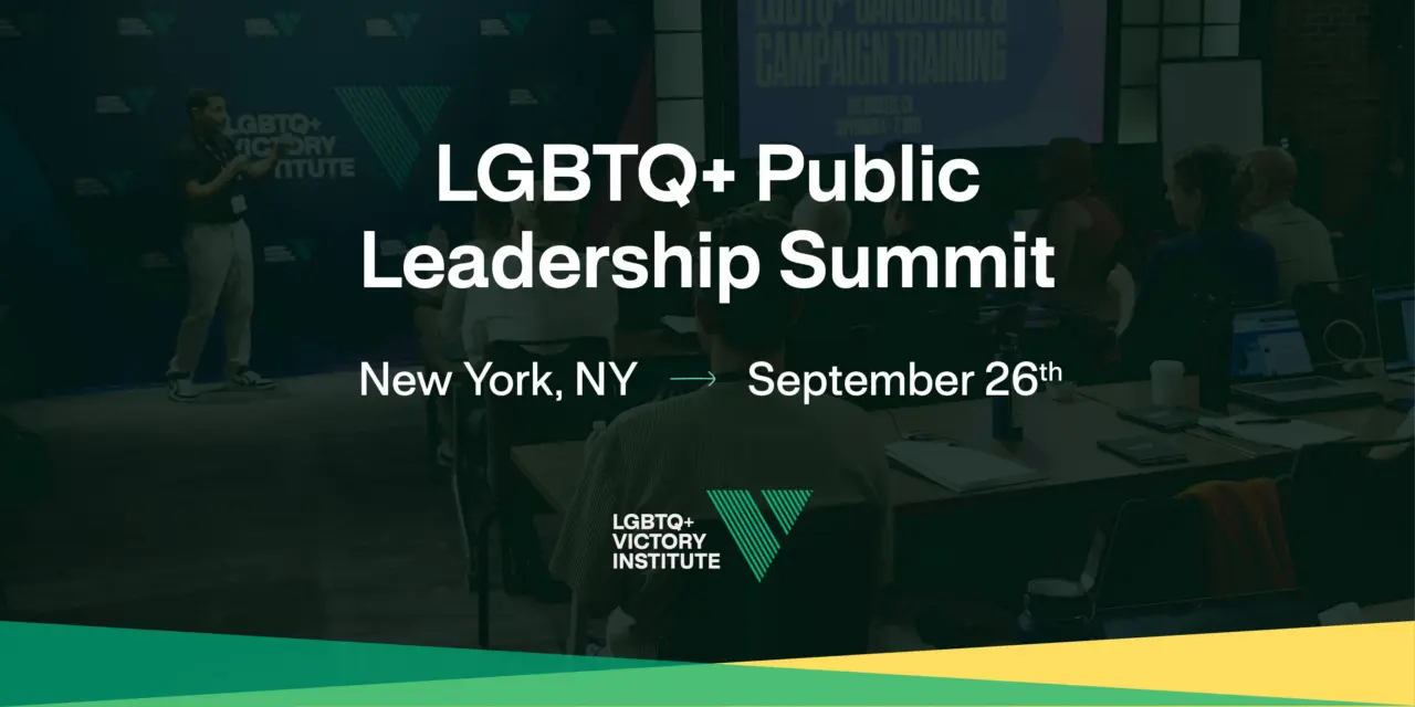 Join us in New York City, NY on Saturday, September 26 from 1-4pm for our LGBTQ+ Public Leadership Summit. The program will be followed by a reception for all attendees from 4:00pm – 5:30pm.