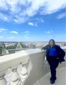 We then continued up one last staircase and went to the outside of the Capitol Building at the top of the dome. I was astounded. I immediately began to document and absorb every angle of DC. Looking out at the national mall, I was awestruck by the view of the people below and the sudden reminder that my work in DC would impact individuals nationwide. This tour underscored the uniqueness of my internship and the experiences that it affords me.